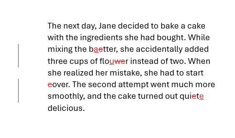 Insertions appear as underlined text in a specific color (often blue or green). This is new text your editor has added—maybe a missing word, a transitional phrase, or a clarification.